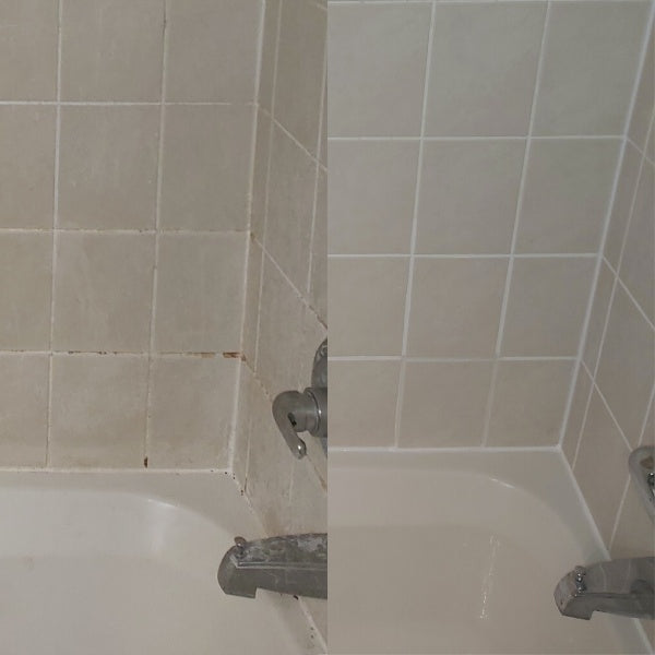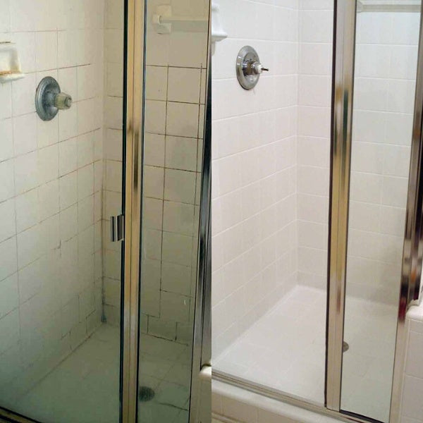 Shower has black or mouldy grout and is in need of partial regrouting and complete deep clean